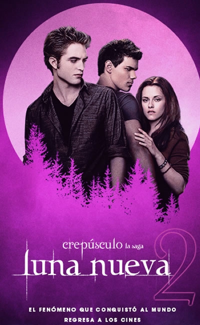 Edward abandona a Bella para protegerla, sumiéndola en una profunda depresión, de la cual la ayuda a salir su amigo Jacob Black, quien revela que es un licántropo y enemigo de los vampiros, mientras Bella busca emociones fuertes para “oír” a Edward y se enfrenta a la venganza de la vampira Victoria, quien busca matarla, aumentando el peligro y su conexión con Jacob y los hombres lobo.